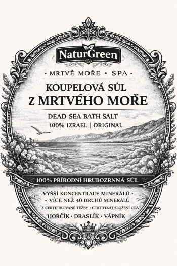 Stoprocentně přírodní sůl do koupele. Sůl pochází z Mrtvého moře v Izraeli a je jedinečná tím, že je mnohonásobně více koncentrovaná než ostatní mořské soli. Produkt je dovážen přímo z Izraele. Certifikáty COA najdete zde